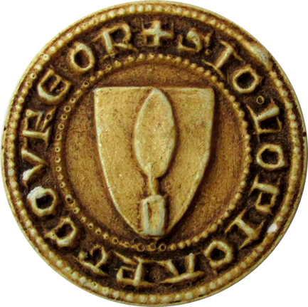 : au centre d'un écu français entouré successivement d'un cercle perlé, d'une légende en lettres gothiques, puis d'un autre cercle de perlé L'écu a pour meuble une truelle de face ou une pointe de lance. La légende est la suivante : * S.IO.LOPICART.COVREOR