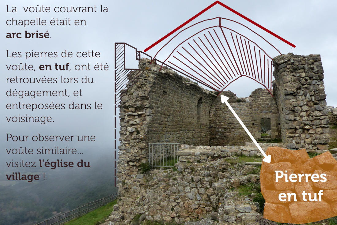 Années 1990 : les bénévoles regroupés dans "L'Association de Sauvegarde du Château de Termes", accompagnés par l'historien Gauthier Langlois, ou encore Fabrice Chambon (Actuel guide-conférencier à Montségur), se lançent dans le déblaiement de la chapelle :