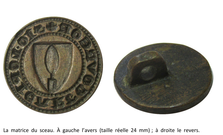 C'est le nom de l'artisan couvreur ayant à priori égaré son sceau matrice en bronze sur le chantier de la toiture de « la chapelle » à la fin du XIIIe... C'est un des artisans venu travailler dans le sud pour le compte de l'autorité royale. Il a par ailleurs participé à l'édification du palais des Papes en Avignon.