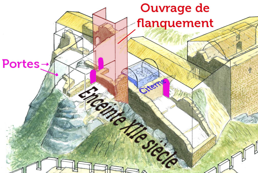 Mais la forteresse de Raimond de Termes s'étalait à vrai dire sur l'essentiel de l'actuelle partie sommitale, autour du donjon. L'exploration archéologique doit encore se poursuivre. Le zonage qui suit est donc hypothètique :