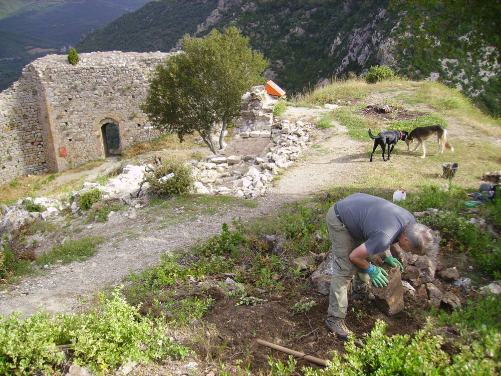 Déblayer, ici, c'est évacuer les gravats et couches qui recouvrent les "gisements" archéologiques. ...et il y a des endroits où cela n'a que peu d'intérêt. A Termes, il y a eu un intéret relatif (comprendre la destruction du donjon !). Concrètement, ce travail pourrait parfois se faire avec des engins de chantiers... s'ils pouvaient s'approcher. Plus souvent, c'est du travail de pelle-pioche-brouette... Car il faut les évacuer, ces volumes de déblais.