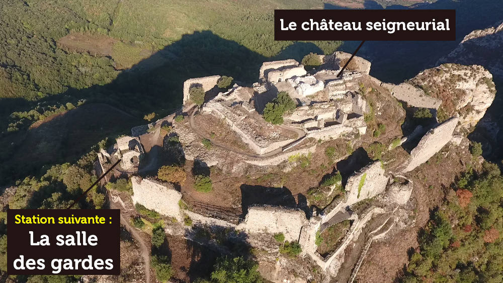 Cette station "château seigneurial" est organisée près des vestiges d'une des citernes et d'un petit réduit rectangulaire, que nous considérons être un "flanquement" de l'enceinte seigneuriale du XIIe siècle.