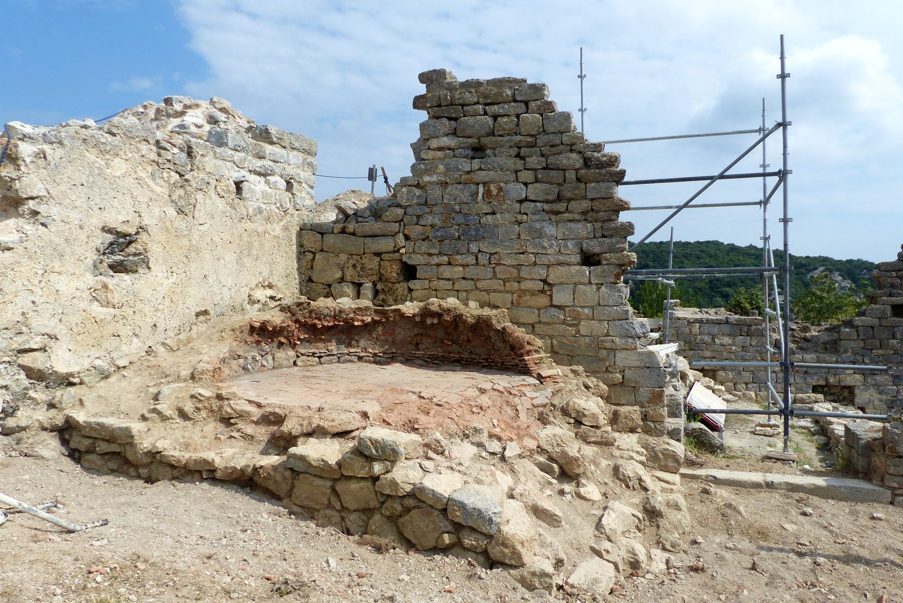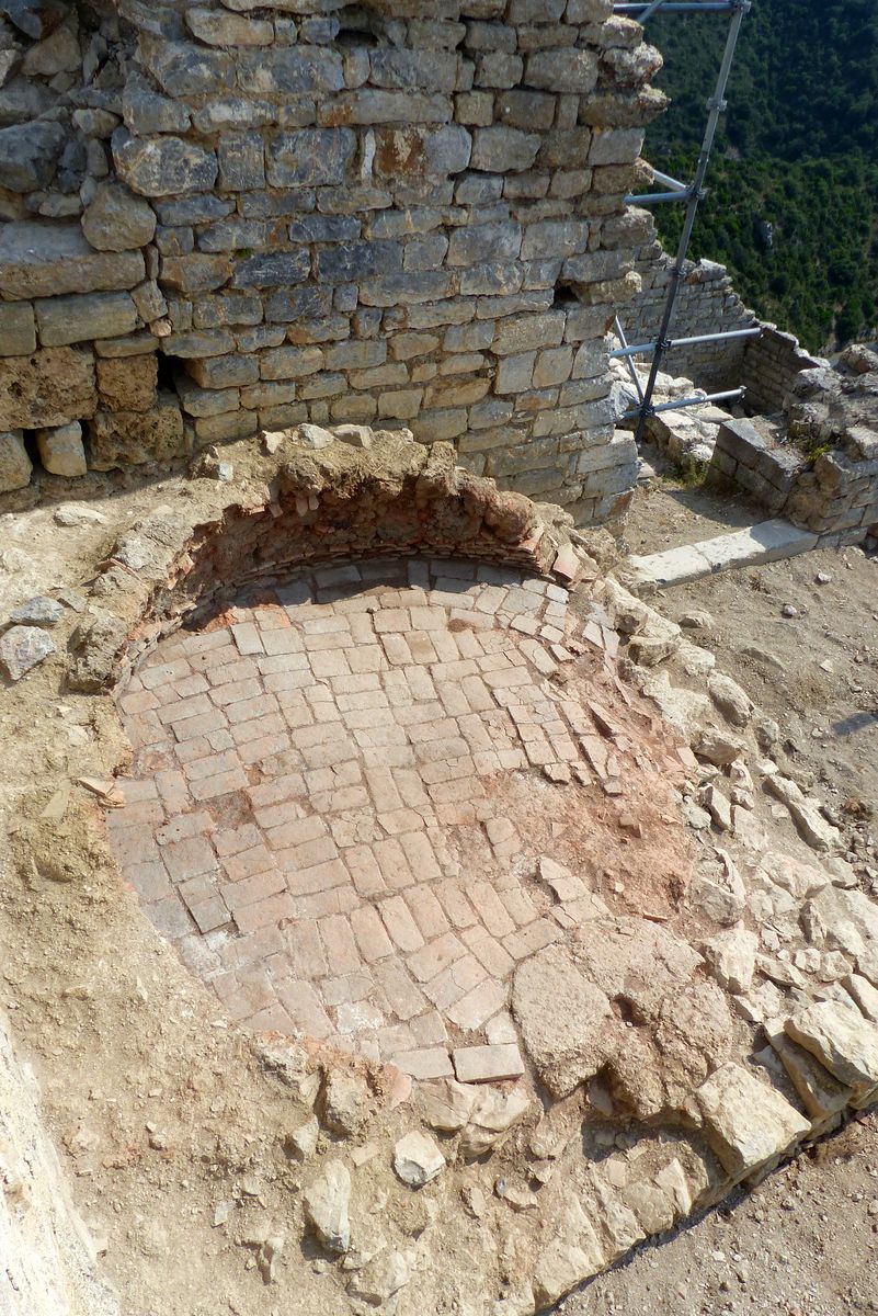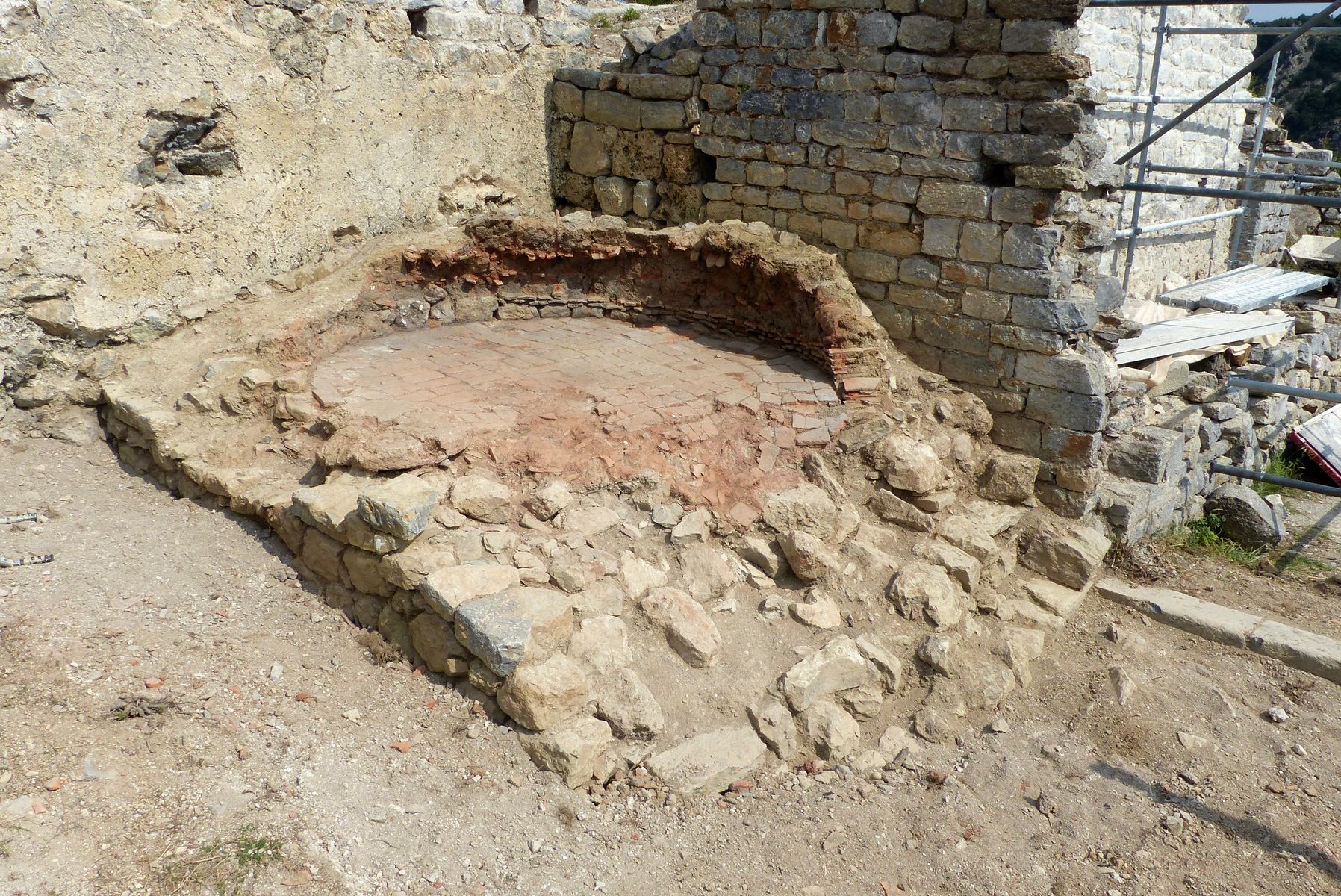 La poursuite des travaux de valorisation a concerné sur juin 2020 un ensemble de consolidations sur les abords du donjon (au nord-est), mais aussi quelques sondages, avec là, surtout, l'exploration de ce four.