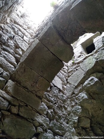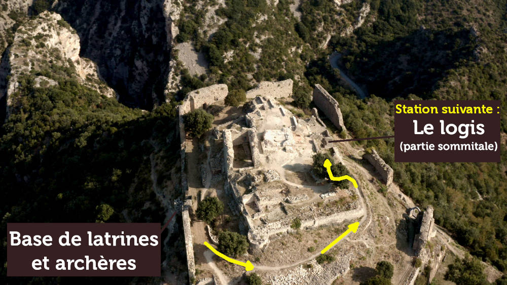 La défense s'effectue donc surtout depuis le chemin de ronde. Œuvre des ingénieurs royaux, le type d'archère principalement visible à Termes est l'archère en étrier, reconnaissable de par sa base triangulaire.