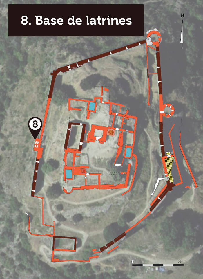 La station qui nous concerne ici nécessite de se pencher un peu, histoire d'observer les quatre ouvertures derrière la palissade en bois. Cet élèment, nous l'analysons comme la base d'un système de latrines sur deux étages !