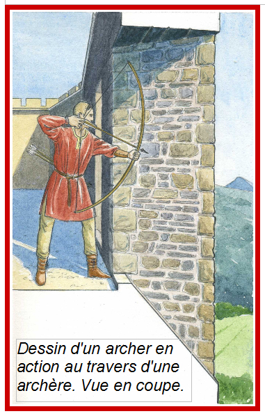 Au Moyen Age, ce sont les arcs et les arbalètes qui sont utilisés. Il faut donc parler d'archères. Ces archères, côté extérieur, sont fines et n'apportent donc pas de vue dégagée et demandent de la précision pour le tir.