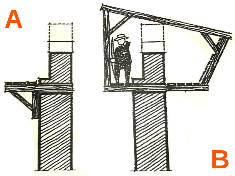 (galerie de bois au sommet du chemin de ronde, schéma B).